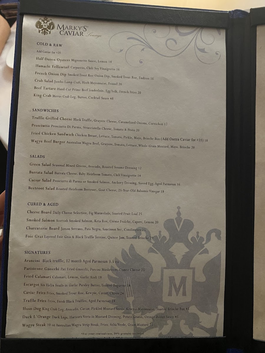 Every dish reflects the restaurant’s commitment to exceptional taste and quality, making the Marky's Caviar Lounge Menu a must-try for anyone seeking a remarkable dining experience.